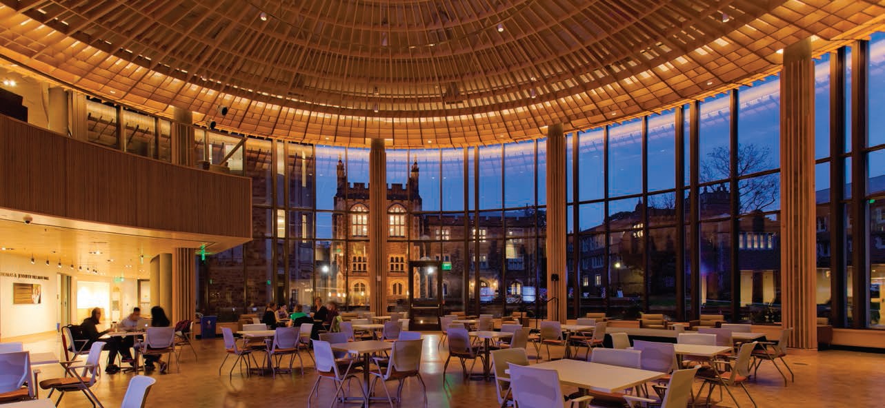 As an expansion to the George Warren Brown School of Social Work at Washington University, much of Hillman Hall matches the campus's collegiate. Gothic vernacular: punched windows in red granite and limestone facades. On approach from the campus green to the North, however, the building's facade is intentionally transparent, cultivating a sense of inclusion and invitation to the university community.