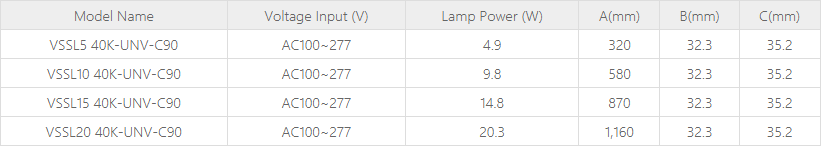 - Available Color: 2700K, 3000K, 3500K, 4000K